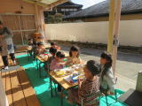 暖かい日は給食もお弁当もテラスで