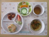 12月9日 シーフードピラフ 鶏肉の照り焼き ゆで野菜 コンソメスープ 果物 ゼリー